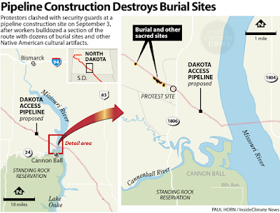 Arrivano i costruttori a realizzare questo DAPL - Dakota Access Pipeline. La ditta si chiama proprio come l'oleodotto, Dakota Access ed e' una filiale della Energy Transfer che gia' controlla 114mila chilometri di oloeodotti USA.