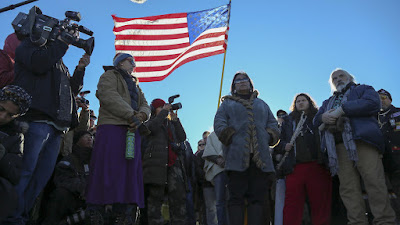 Poi il Dipartimento della Giustizia, il Dipartimento dell'Army, il Dipartimento dell'Interno sotto l'amministrazione Obama mandano una ingiunzione per fermare tutti i lavori sulle terre che i Sioux considerano sacre in modo da capire come procedere, mentre ci sono i vari teatrini sulla consultazione si o no.
