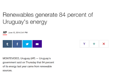 Hanno iniziato i paesi dell'America centrale e dei Caraibi, che dopo un decennio di prezzi petroliferi elevati e di piccole e grandi catastrofi naturali hanno deciso di prodursi l'energia in casa. Costa Rica, Uruguay, l'isola di Bonaire sono tutte al 100% rinnovabili o quasi. Il Nicaragua si e' posto l'obiettivo del 90% rinnovabile entro il 2020, e anzi, in un primo momento non voleva nemmeno partecipare agli accordi di Parigi perche' ritenuti troppo blandi!