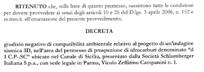 espresso parere negativo all'airgun Schlumberger non lontano da qui nella concessione d1 CP SC, di circa 2200 chilometri quadrati e nei pressi di Ragusa e Siracusa e per queste motivazioni:
